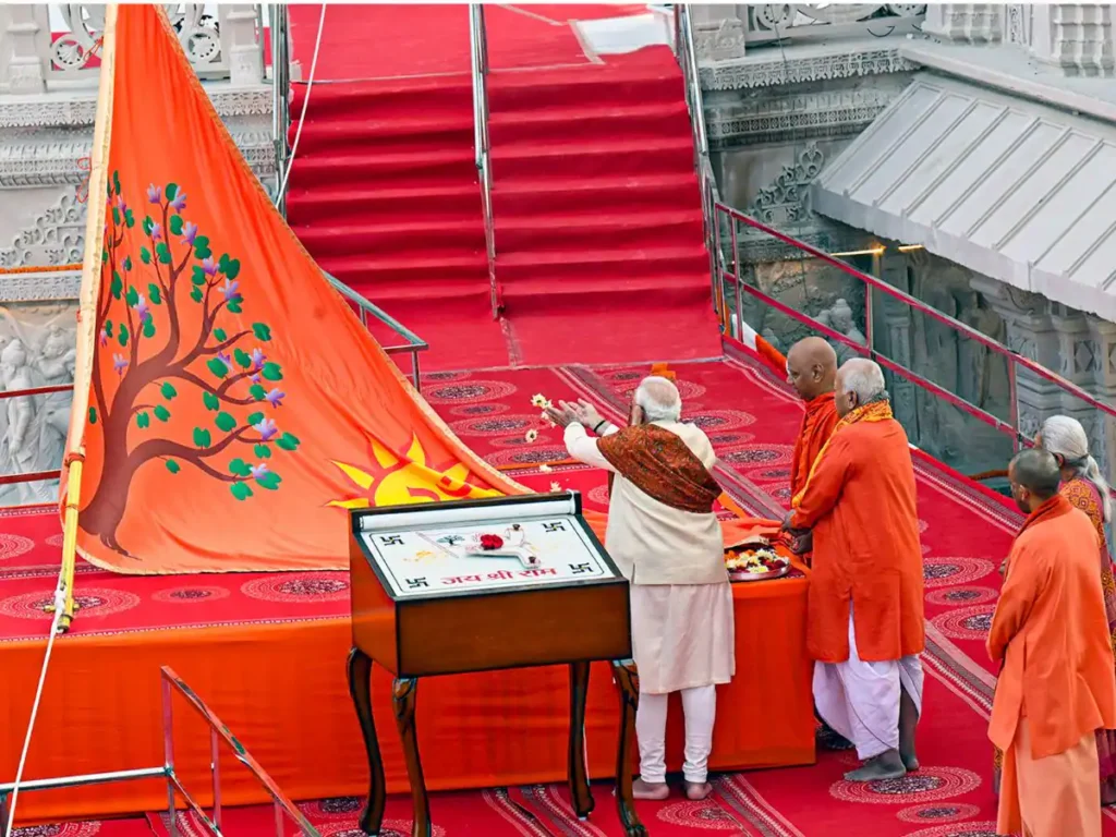 PM मोदी ने कहा कि यह ध्वज केवल मंदिर की शोभा नहीं बढ़ाता, बल्कि दूर से ही रामलला के जन्मस्थान का संकेत देता है। ध्वज राम के आदर्शों को आने वाली पीढ़ियों तक पहुंचाएगा।