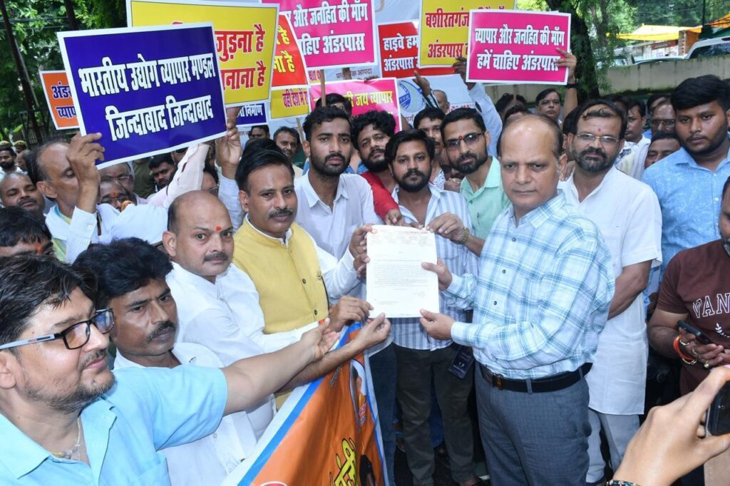 बशीरतगंज व्यापारियों का विरोध प्रदर्शन, जिलाधिकारी को सौंपा ज्ञापन