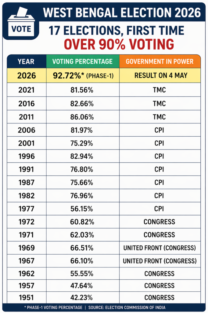 बंगाल में रिकॉर्ड मतदान पर कोर्ट की सराहना